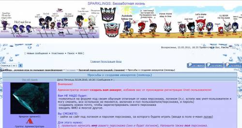 На страницах ролевой игры у вас есть возможность отыграть бэтство любимого персонажа, понаблюдать и даже поучаствовать в написании историй жизни своих друзей - маленьких автоботиков и десептикончиков). Хотя все это достаточно условно! Кибертрон переживает свой Золотой век, никто еще не думает ни о насилии, ни о жестокостях и уж тем более ни о войнах между алознаковыми и фиолетовознаковыми! Ничего этого вы здесь не увидите!