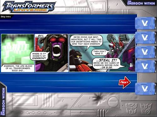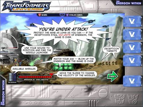 Сюжет: Автоботы открываю крупное месторождение энергона и готовятся транспортировать первый партию, когда Десептиконы внезапно нападают! Вы под огнем!